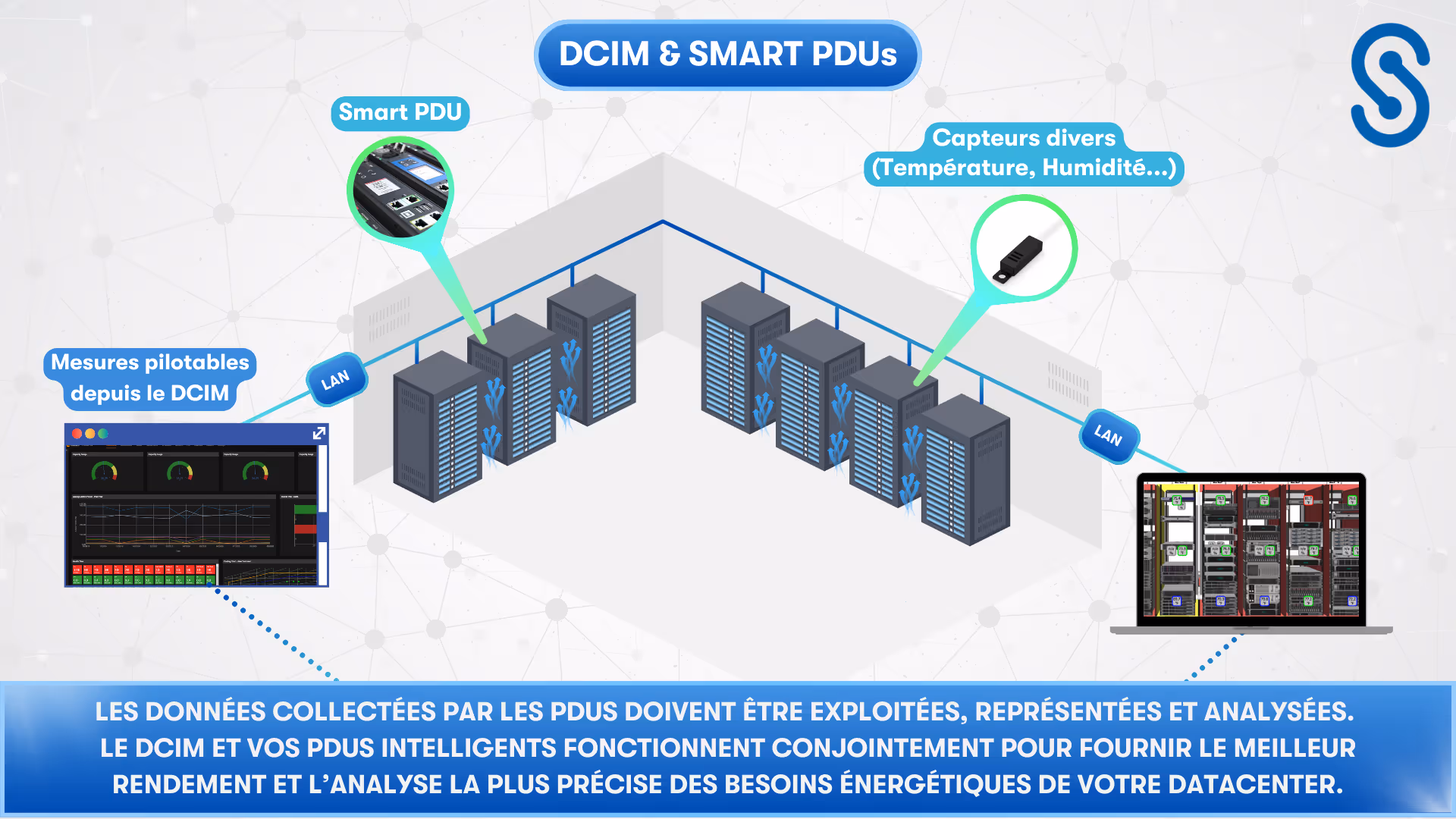 Ils permettent une mesure détaillée de la consommation d'énergie, un contrôle à distance des prises, une gestion de la température et de l'humidité, des alertes en temps réel, une intégration simplifiée et optimisée pour le DCIM. Ils permettent une réelle optimisation de la gestion de l'énergie au niveau du rack afin d’améliorer l'efficacité énergétique globale du datacenter.